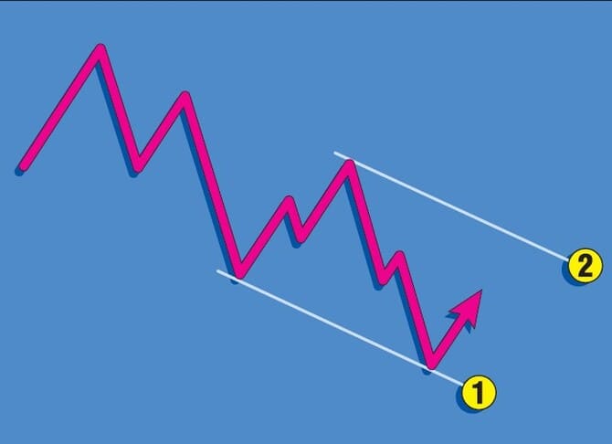 - SIDEBAR FIGURE 4: DOWNWARD CHANNEL, RESISTANCE. Identify two low closing prices and draw line 1. Use the extreme high closing price between the two low closes to draw your parallel line.